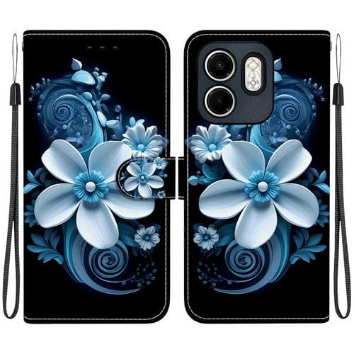 Funda de Cuero para Infinix Hot 50I/Smart 9 con Dibujo de Colores y Textura de Cristal (Orquídea Negra)