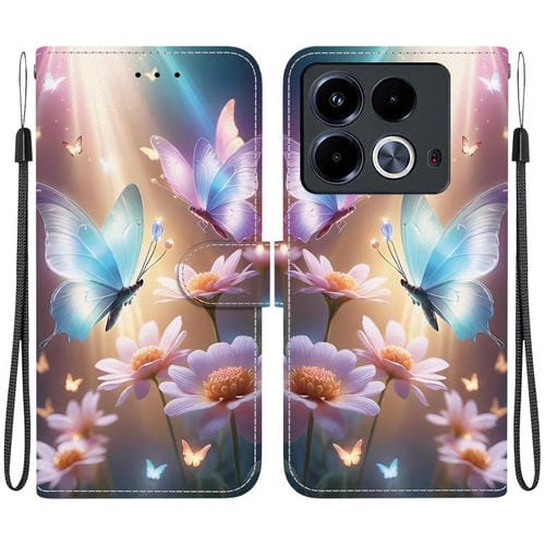 Funda de Cuero para Infinix Note 40 4G con Dibujo de Colores y Textura de Cristal (Mariposa, Amor y Flores)