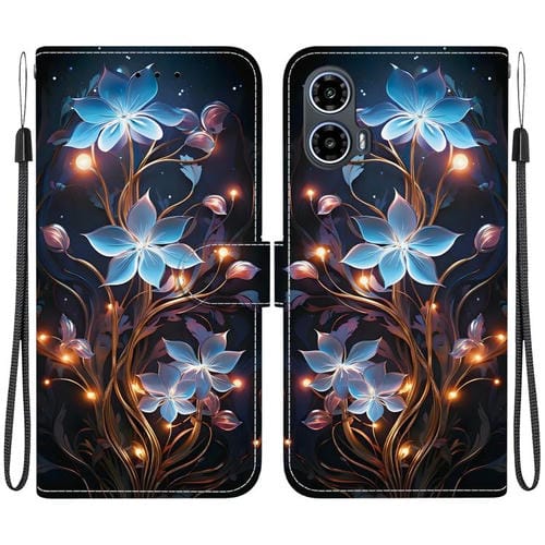 Funda de Cuero para Motorola Moto G34 5G con Dibujo de Colores y Textura de Cristal (Flor de Linterna Pequeña)
