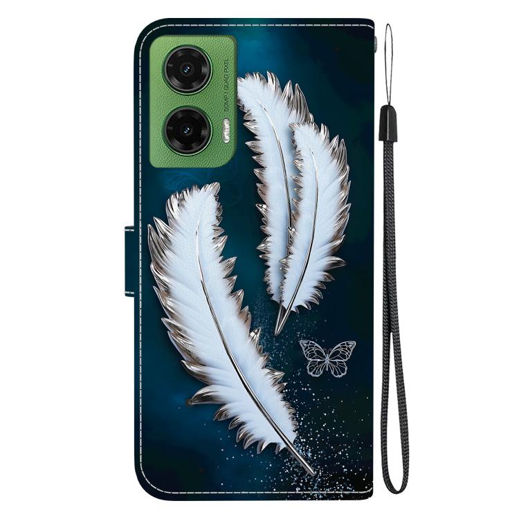 Funda de Cuero con Dibujo y Textura de Cristal para Motorola Moto G35 (Plumas de Mariposa Blancas)