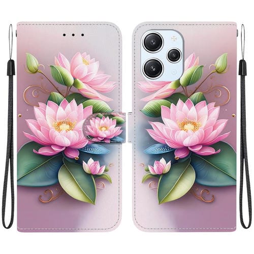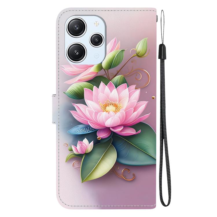 Funda de Cuero con Dibujo de Colores y Textura de Cristal para Redmi 12 4G/5G/Poco M6 Pro (Lotus)