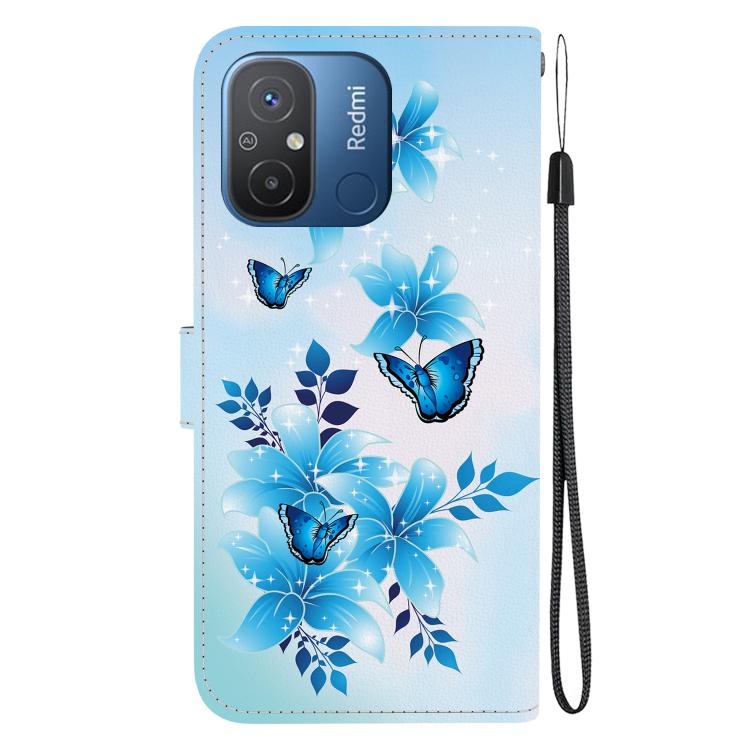 Funda de Cuero con Dibujo de Colores y Textura de Cristal para Redmi 12C/11A (Mariposas Azules)