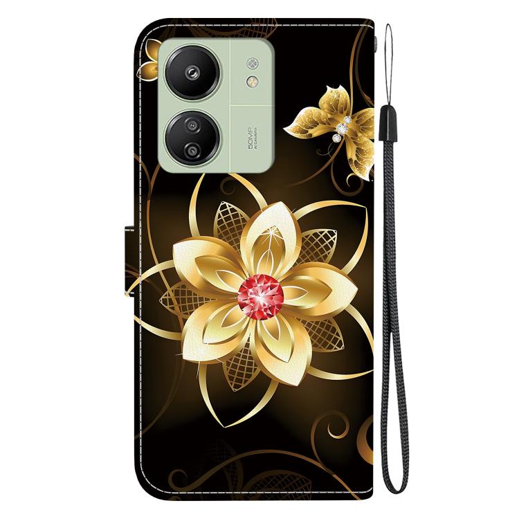 Funda de Cuero con Dibujo de Colores y Textura de Cristal para Redmi 13C 4G / 5G / 13R 5G (Flor Dorada)