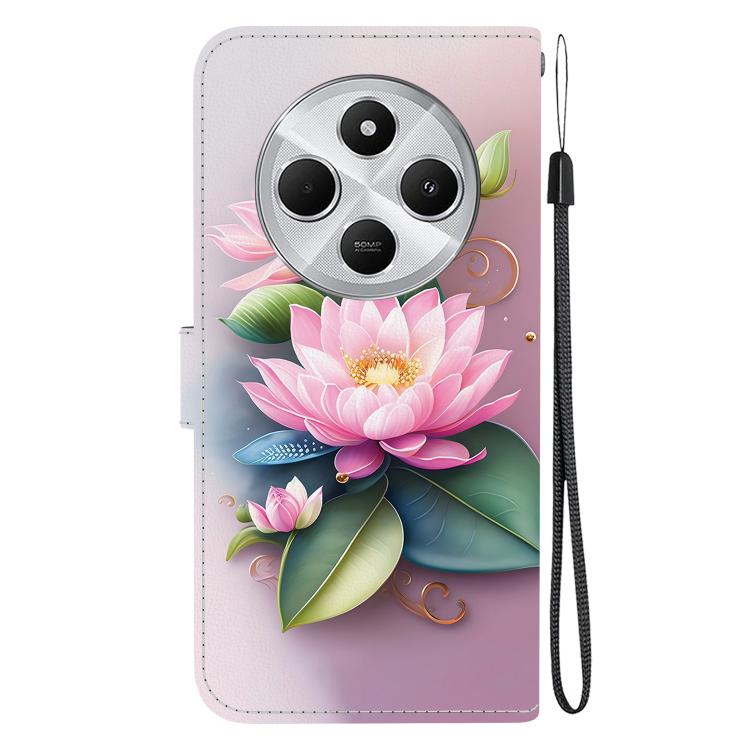 Funda de Cuero con Dibujo de Colores y Textura de Cristal para Redmi 14C 4G (Lotus)
