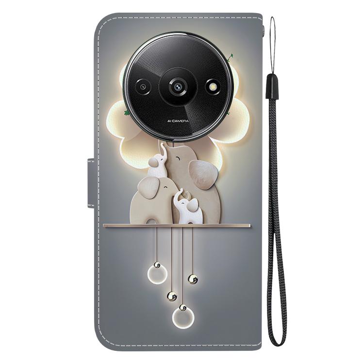 Funda de Cuero con Dibujo de Colores y Textura de Cristal para Redmi A3 (Elefantes)