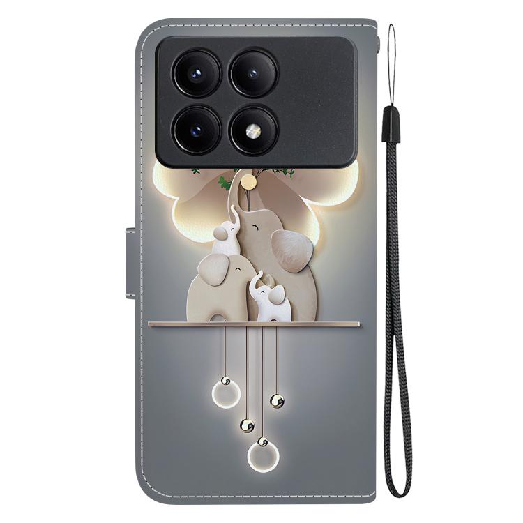 Funda de Cuero con Dibujo de Colores y Textura de Cristal para Redmi K70E/Poco X6 Pro (Elefantes)