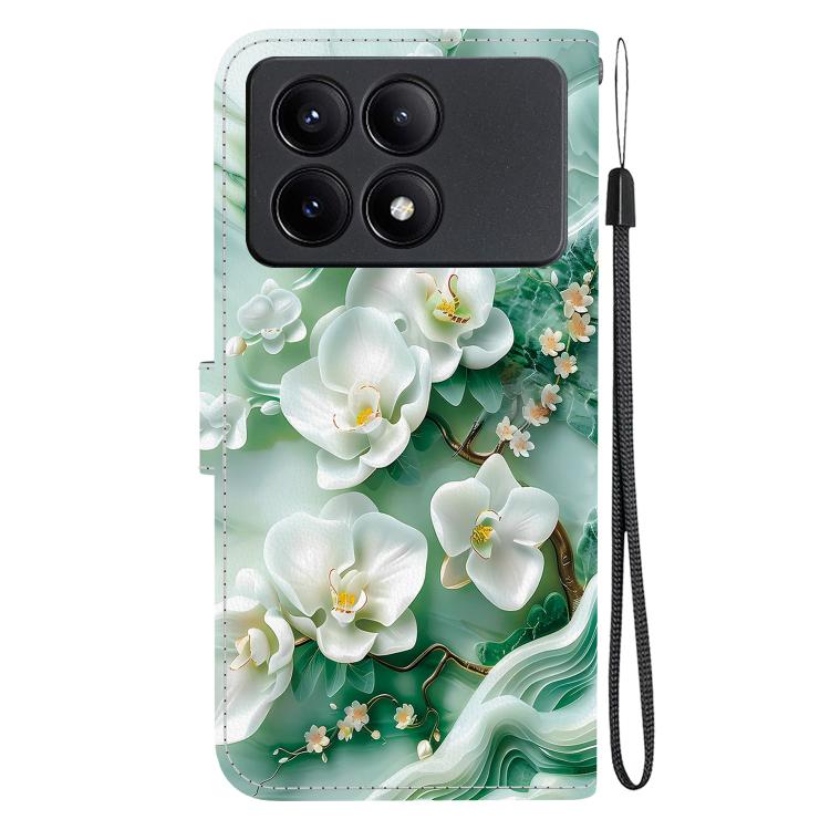 Funda de Cuero con Dibujo de Colores y Textura de Cristal para Redmi K70E/Poco X6 Pro (Flores de Jade)