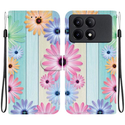 Funda de Cuero con Dibujo de Colores y Textura de Cristal para Redmi K70E/Poco X6 Pro (Girasoles)