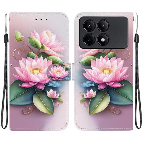 Funda de Cuero con Dibujo de Colores y Textura de Cristal para Redmi K70E/Poco X6 Pro (Lotus)
