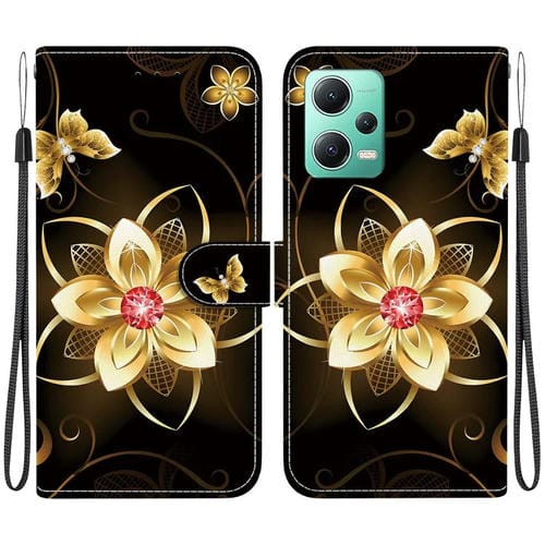 Funda de Cuero con Dibujo de Colores y Textura de Cristal para Redmi Note 12 5G/Poco X5 (Flor Dorada)