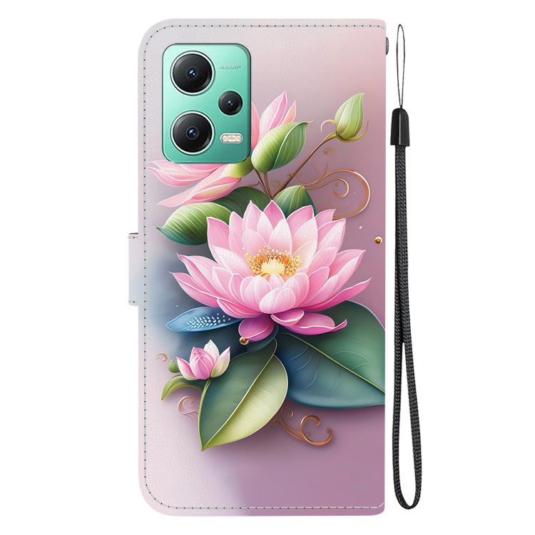 Funda de Cuero con Dibujo de Colores y Textura de Cristal para Redmi Note 12 5G/Poco X5 (Lotus)