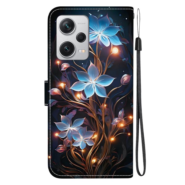 Funda de Cuero con Dibujo de Colores y Textura de Cristal para Redmi Note 12 Pro+ 5G (Flor de Linterna Pequeña)
