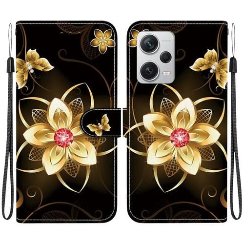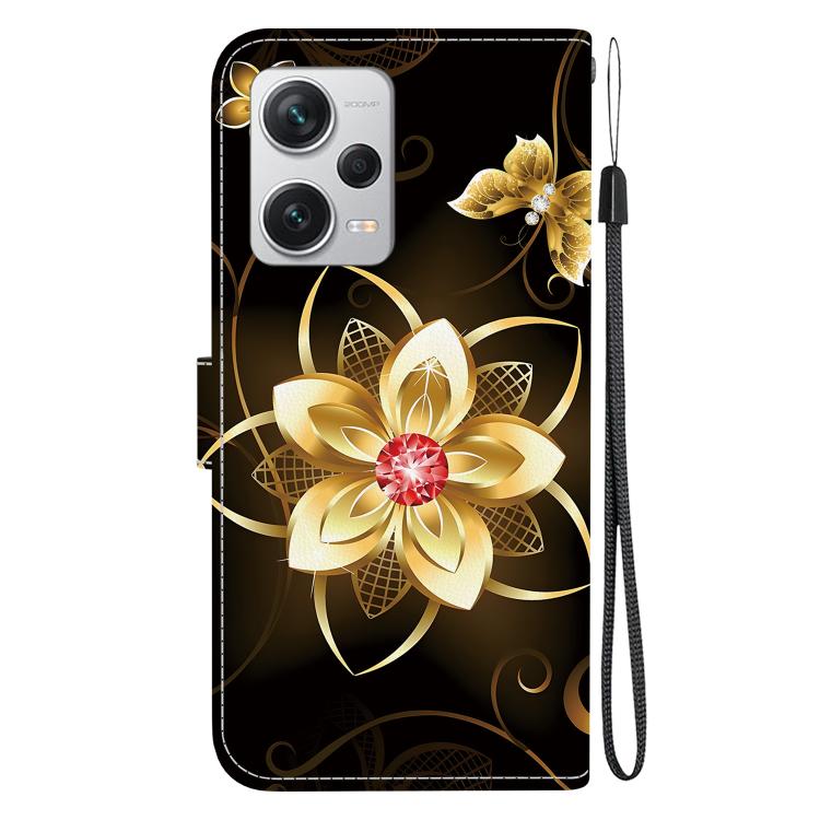 Funda de Cuero con Dibujo de Colores y Textura de Cristal para Redmi Note 12 Pro+ 5G (Flor Dorada)
