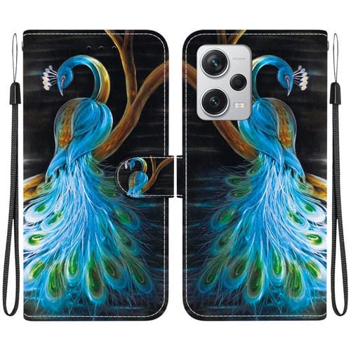 Funda de Cuero con Dibujo de Colores y Textura de Cristal para Redmi Note 12 Pro+ 5G (Pavo Real)