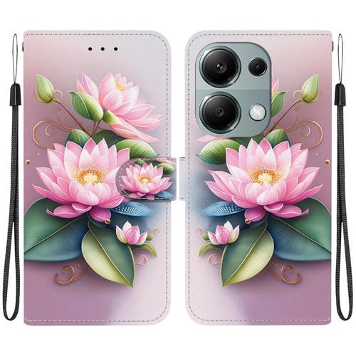 Funda de Cuero con Dibujo de Colores y Textura de Cristal para Redmi Note 13 Pro 4G / Poco M6 Pro (Lotus)