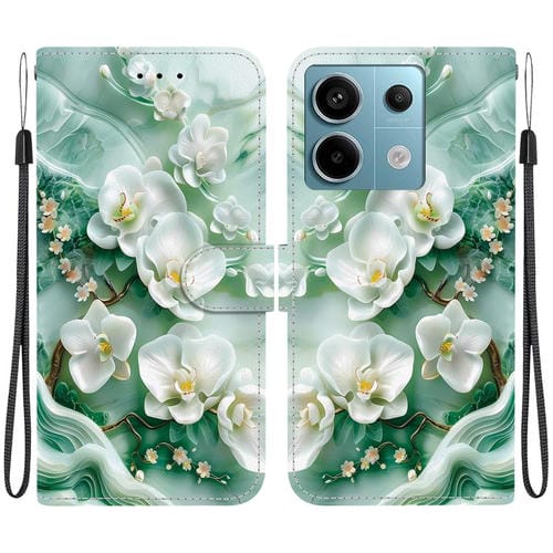 Funda de Cuero con Dibujo de Colores y Textura de Cristal para Redmi Note 13 Pro 5G (Flores de Jade)