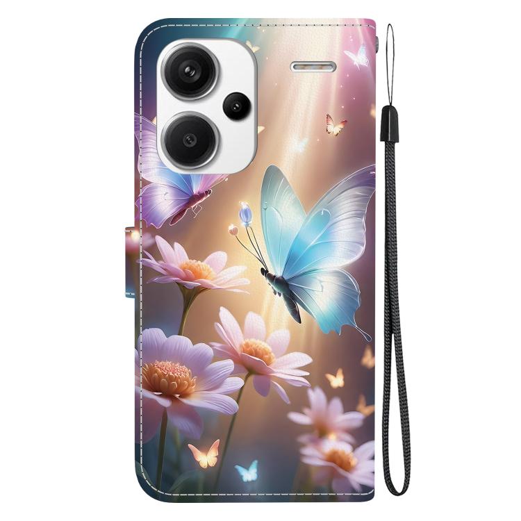 Funda de Cuero con Dibujo de Colores y Textura de Cristal para Redmi Note 13 Pro+ 5G (Mariposa, Amor y Flores)
