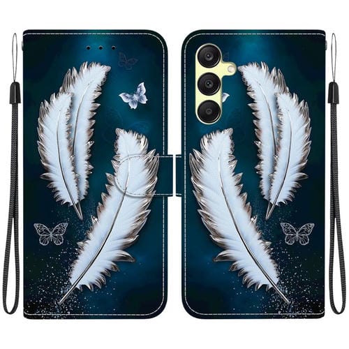 Funda de Cuero Samsung Galaxy A25 5G Dibujo Colores Textura Cristal (Plumas de Mariposa Blancas)