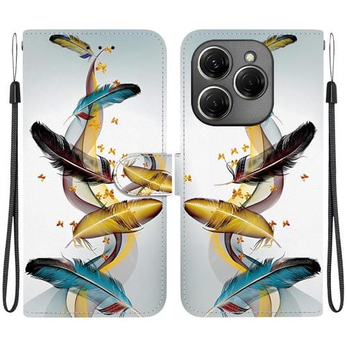 Funda de Cuero para Tecno Spark 20 Pro con Dibujo de Colores y Textura de Cristal (Plumas de Mariposa Doradas)