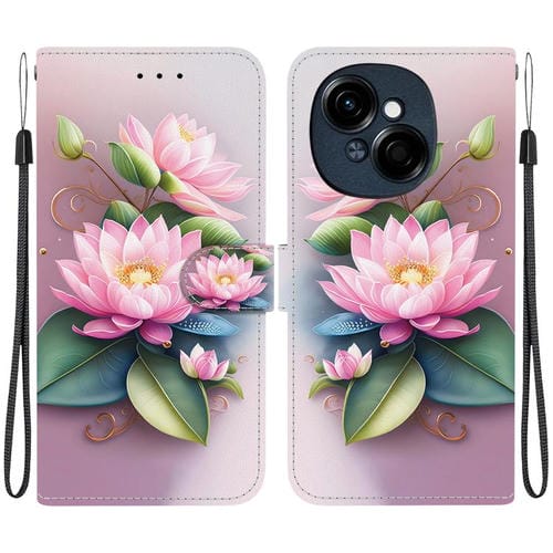Funda de Cuero para Tecno Spark Go 1 y Pop 9 Pro con Dibujo de Colores y Textura de Cristal (Lotus)