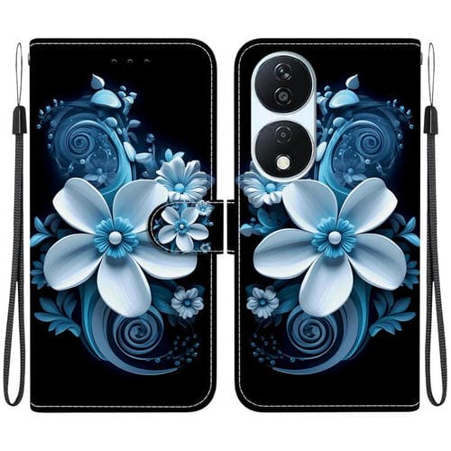 Funda de Cuero Honor X7B Play 50 Plus con Dibujo y Textura de Cristal (Orquídea Negra)
