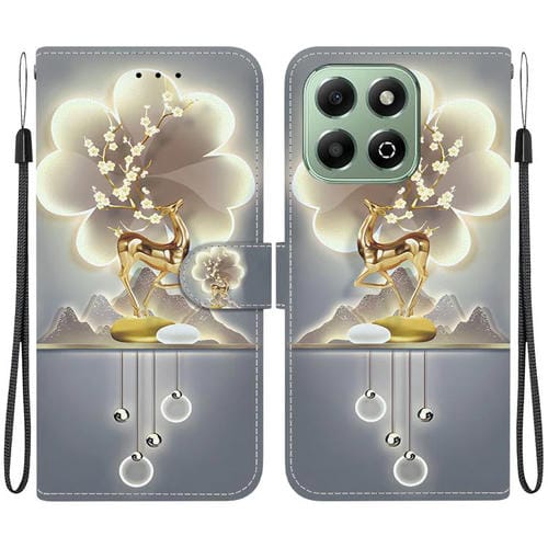 Funda de Cuero para Honor X6B con Dibujo de Ciervo Sika y Textura de Cristal