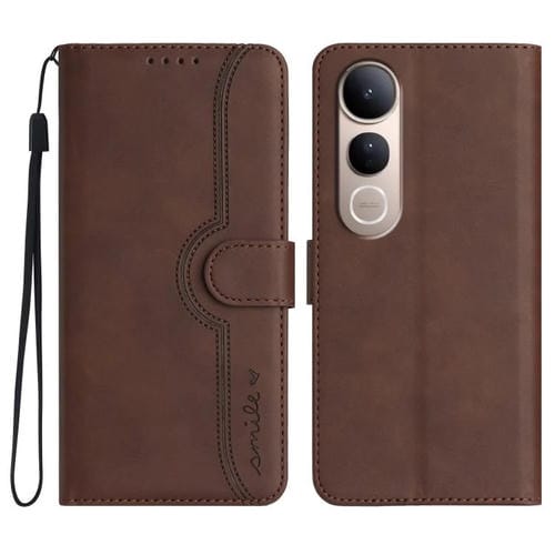 Funda de Cuero con Diseño de Corazón para Vivo V50 Lite 4G/5G (Marrón)