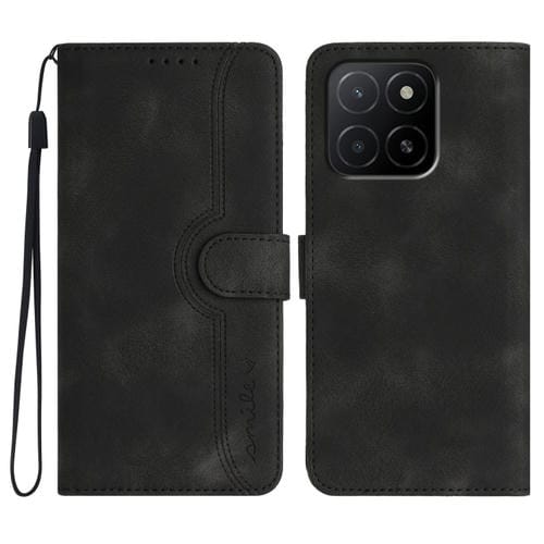 Funda de Cuero para Honor X5B y X5B Plus con Diseño de Corazón y Tacto Agradable (Negro)