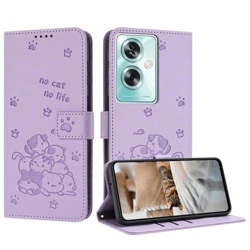 Funda de Cuero con Diseño de Gatito En Relieve para Oppo A79 5G (Morado)