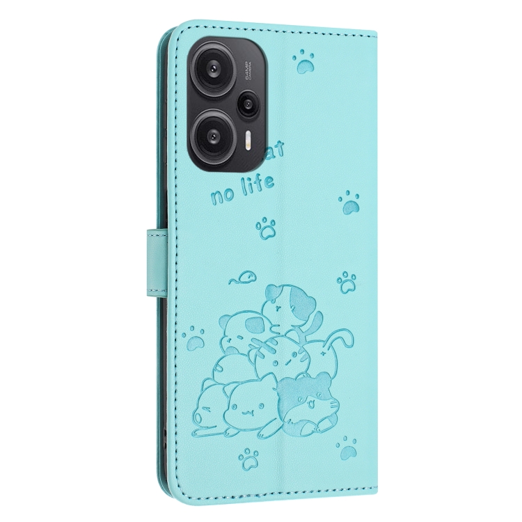 Funda de Piel con Diseño de Gatito En Relieve para Redmi Note 12 Turbo con Cordón (Verde Menta)