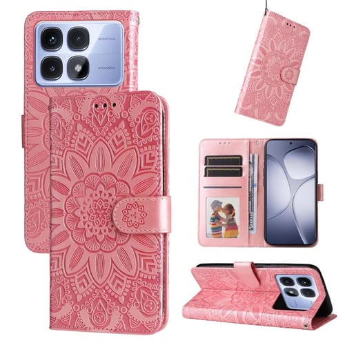 Funda de Cuero con Diseño de Girasol En Relieve para Redmi K70 Ultra (Oro Rosa)