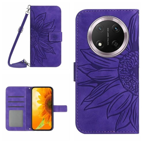 Funda de Cuero Honor X9C con Diseño de Girasoles y Cordón (Morado Oscuro)