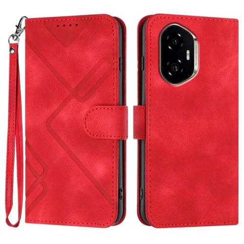 Funda de Cuero para Honor 300 con Diseño de Líneas y Tacto Suave (Rojo)