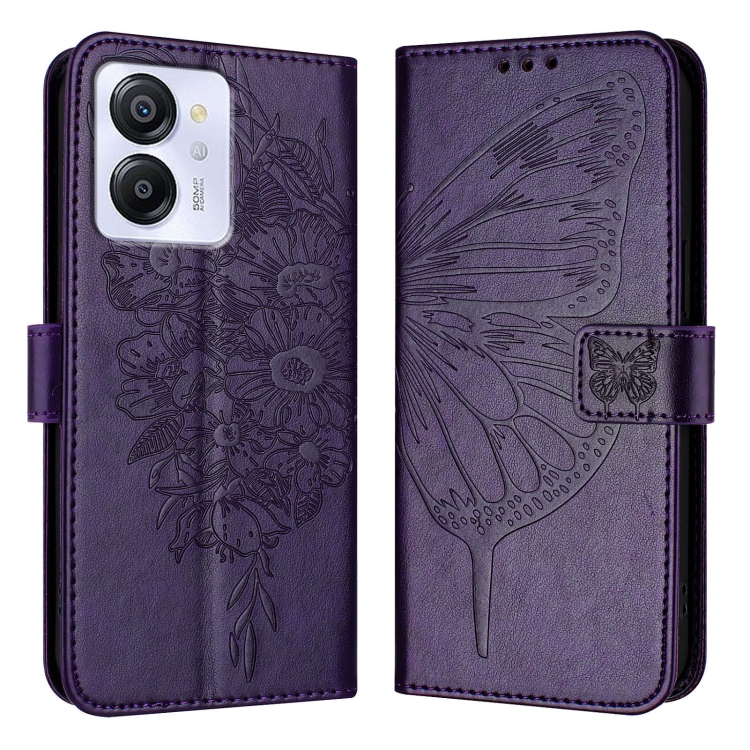 Funda de Cuero para BlackView Color 8 con Diseño de Mariposa en Relieve (Morado Oscuro)