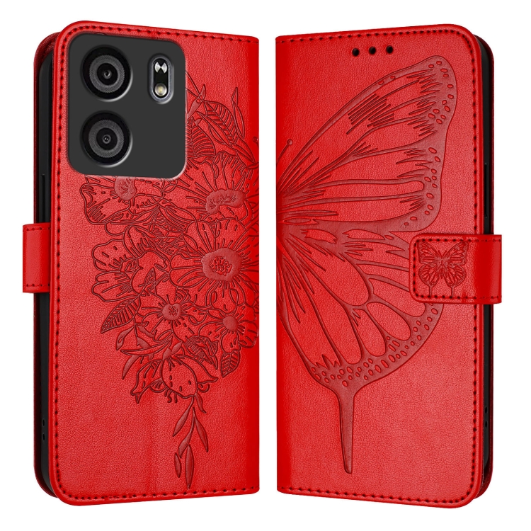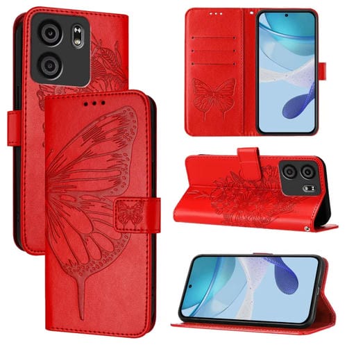 Funda de Cuero Blu View 5 Diseño Mariposa en Relieve (Roja)