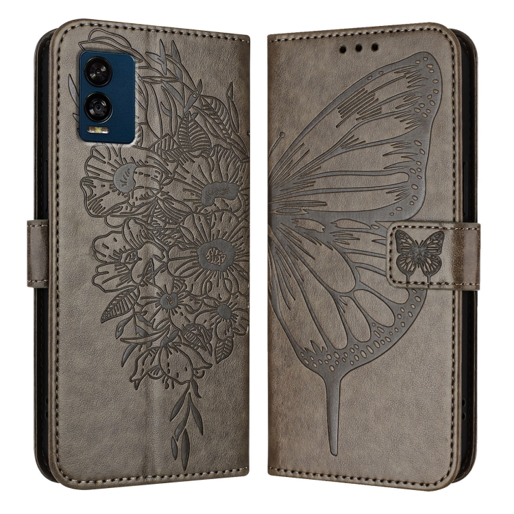 Funda de Cuero Blu View Speed 5G diseño Mariposa en Relieve (Gris)