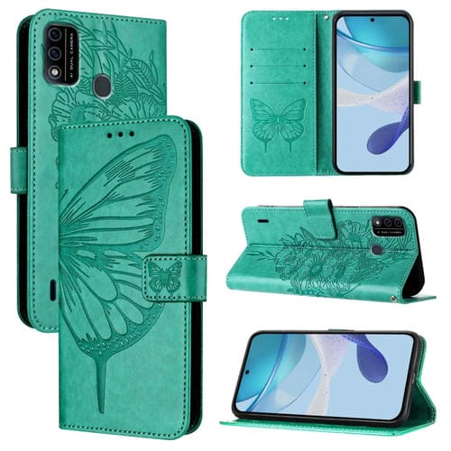 Funda de Cuero para Teléfono Itel A48 con Diseño de Mariposa en Relieve (Verde)