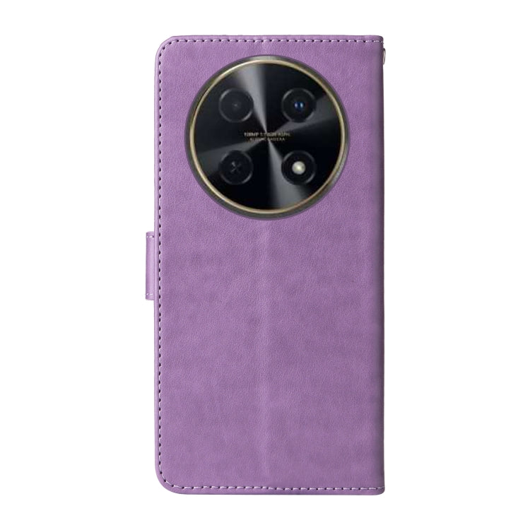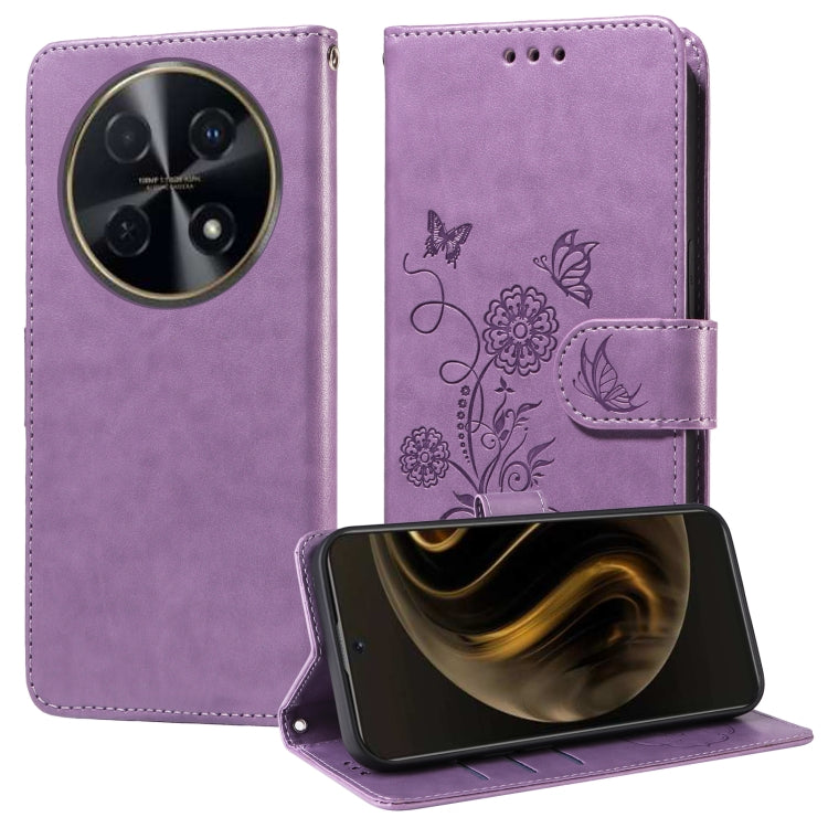 Funda de Cuero Huawei Enjoy 70 Pro 4G Nova 12I Diseño Mariposas y Flores en Relieve (Morado)