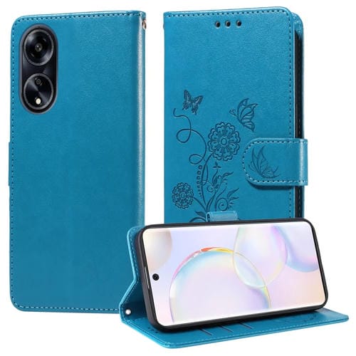 Funda de Cuero con Diseño de Mariposas y Flores En Relieve para Oppo A1/A98/F23 5G (Azul)