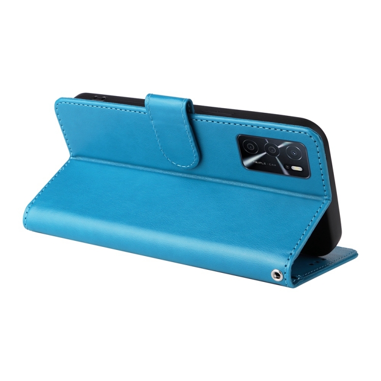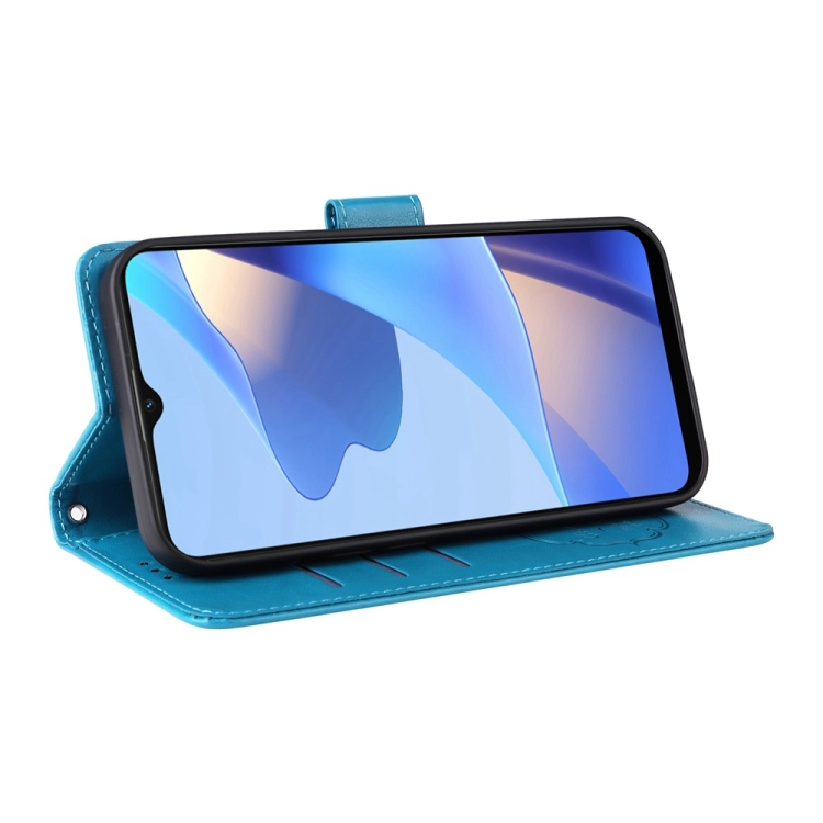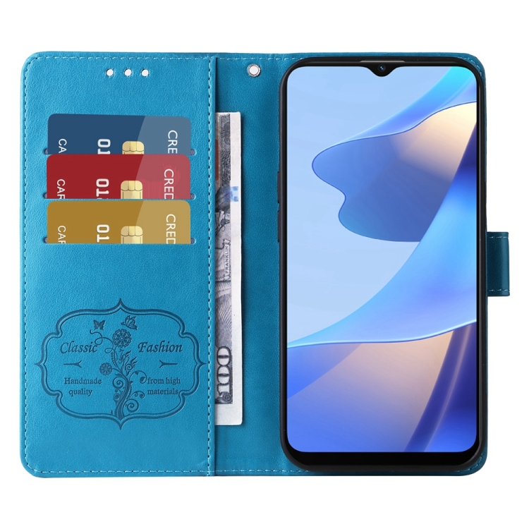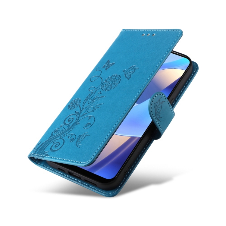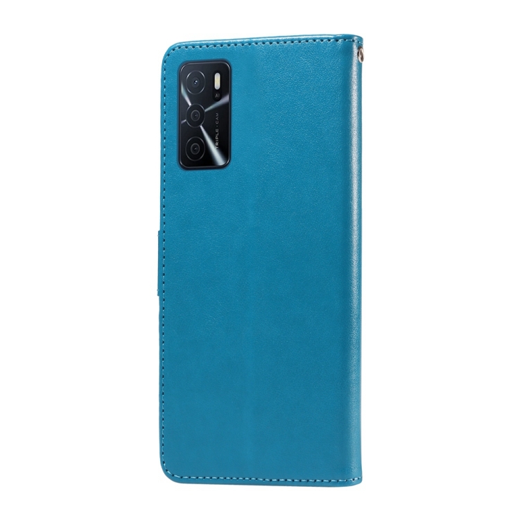 Funda de Cuero con Diseño de Mariposas y Flores En Relieve para Oppo A54 4G / A54S / A55 4G / 5G / A53S 5G (Azul)