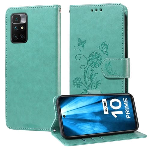 Funda de Cuero con Diseño de Mariposas y Flores En Relieve para Redmi 10 2022/10 Prime (Verde)