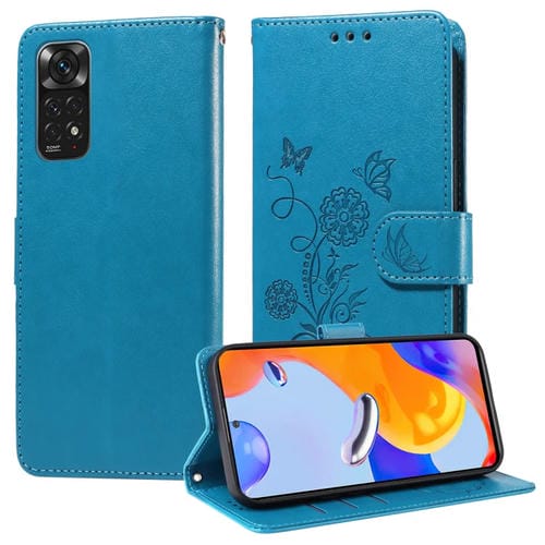 Funda de Cuero con Diseño de Mariposas y Flores En Relieve para Redmi Note 11 4G/Note 11S (Azul)