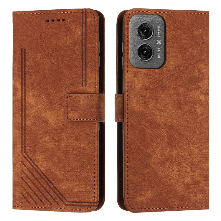 Funda de Cuero Motorola Moto G55 con Diseño de Rayas y Tacto Suave (Marrón)