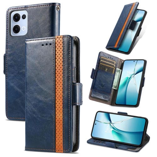 Funda de Cuero con Doble Hebilla Magnética para Oppo Reno13 Pro (Azul)