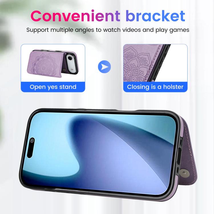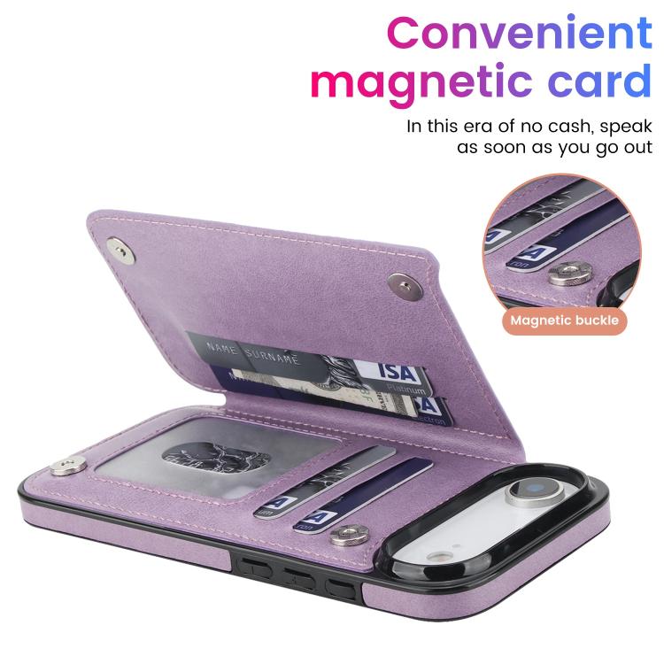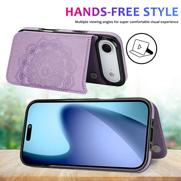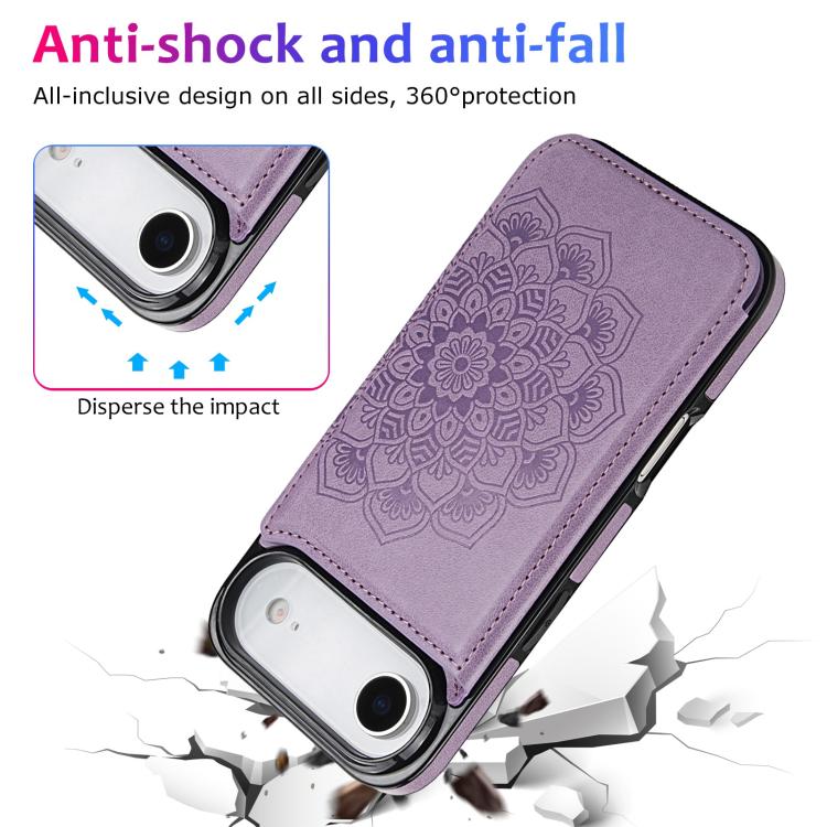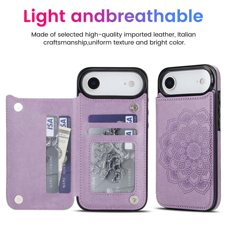 Funda de cuero con doble hebilla y diseño de mandala para iPhone Air (morado)