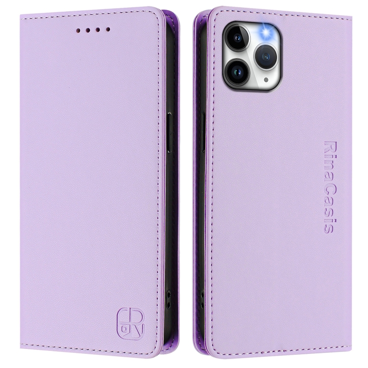 Funda de Cuero Rc01 para iPhone 11 Pro Max con Doble Pliegue y Succión Magnética (Morado Claro)
