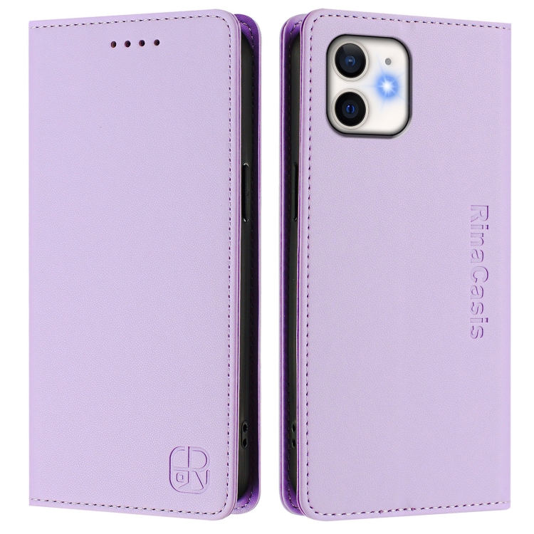 Funda de Cuero Rc01 para iPhone 11 con Doble Pliegue y Succión Magnética (Morado Claro)