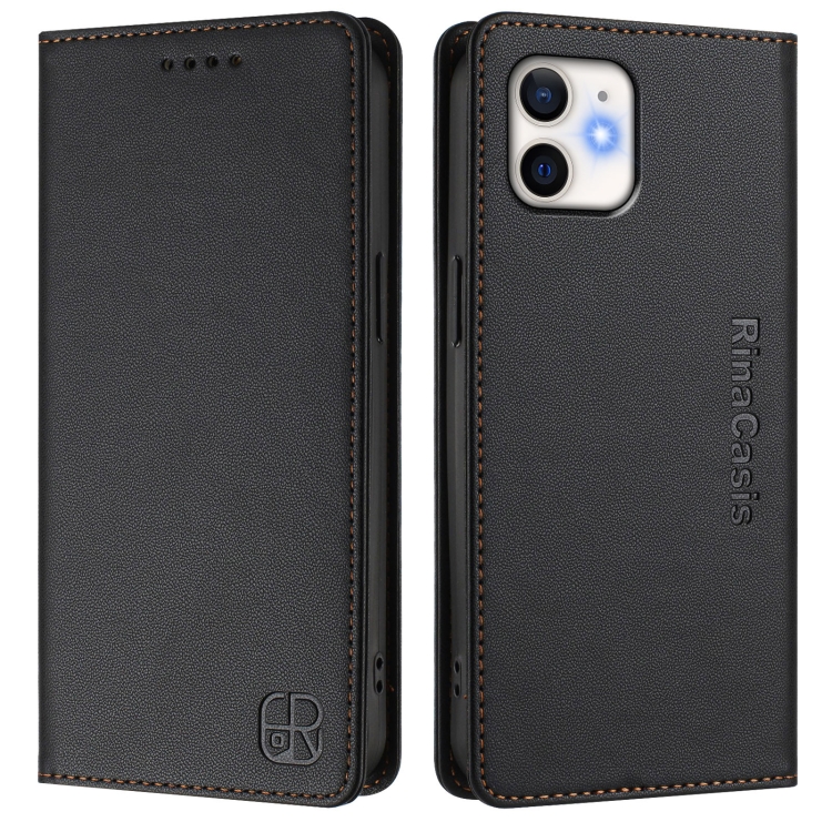 Funda de Cuero Rc01 para iPhone 11 con Doble Pliegue y Succión Magnética (Negra)