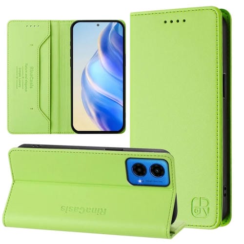 Funda de Cuero Motorola Moto G45 5G G34 5G Rc01 Doble Pliegue Succión Magnética (Verde Hierba)