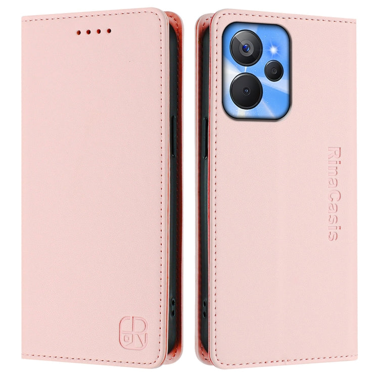 Funda de Cuero con Doble Pliegue y Succión Magnética para Realme 10T 5G/10S 5G/9I 5G Indian Rc01 (Rosa)